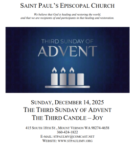 Worship: December 14, 2025 (The Third Sunday of Advent) Posted on December 14, 2025 by JenM Click here for the bulletin. Click here for instructions on how to give to St. Paul’s.